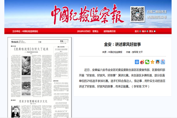 】 【编辑日期:2018-03-09】 【作者/来源:中国纪检监察报】【阅读: 】